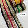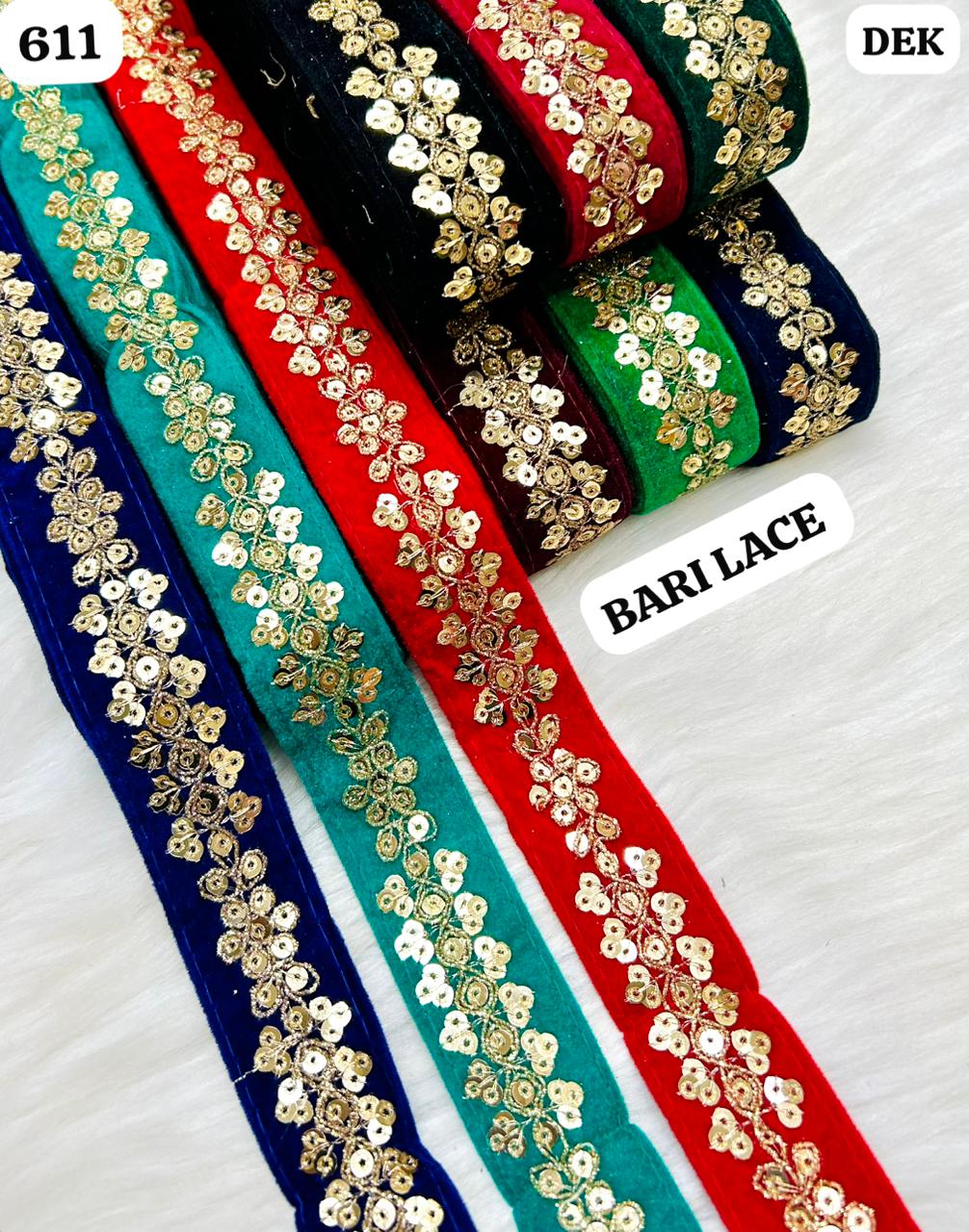 This DEK series lace (Ref: 611) focuses on movement and light. The gold thread forms a wavy vine, while the sequins are arranged in a staggered, alternating pattern to catch the light from every angle. It is a lightweight, flexible lace suitable for lighter fabrics like chiffon or georgette.
