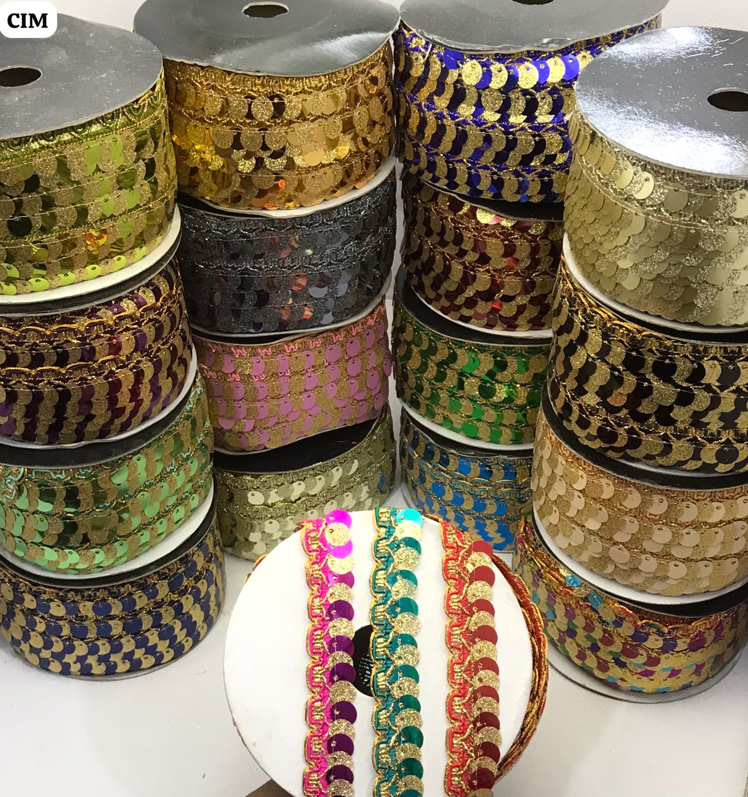 This classic decorative trim uses overlapping round sequins to create a rich, textured “fish-scale” effect. Each sequin is secured with high-quality metallic thread. It provides a heavy, luxurious look for bridal wear, formal borders, and festive decorations.