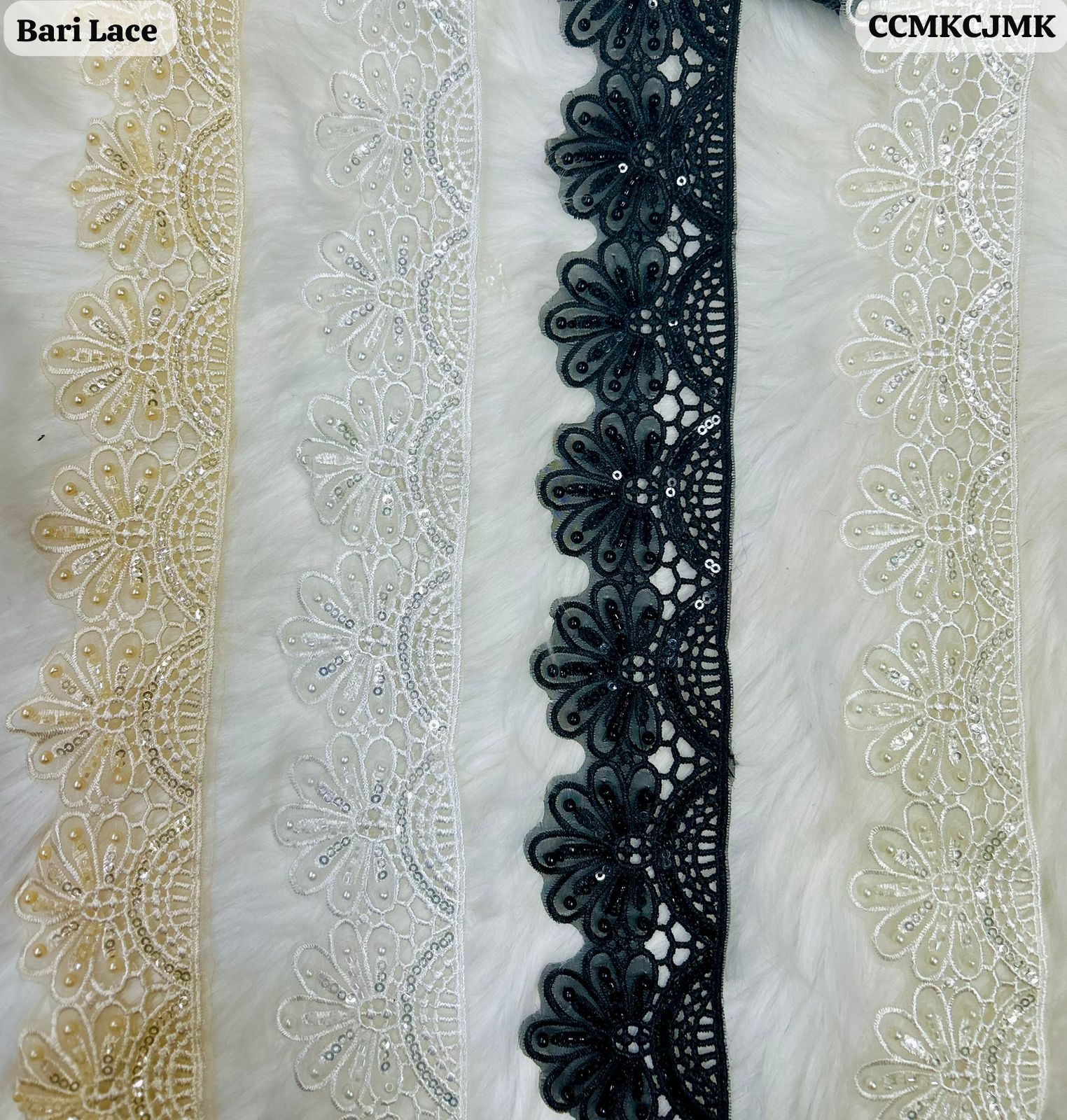 Traditional sunburst floral patterns with beaded edges and sequin fills.